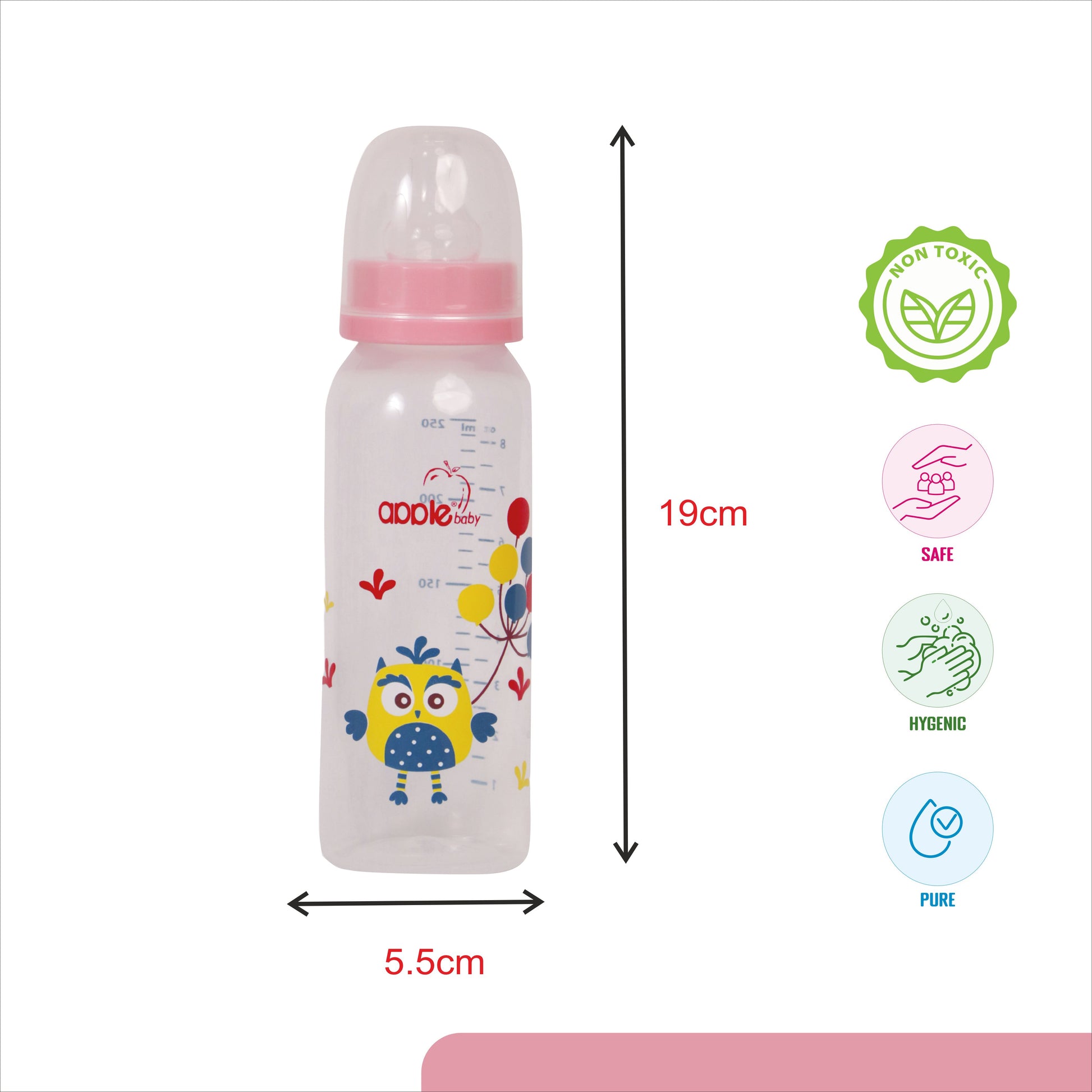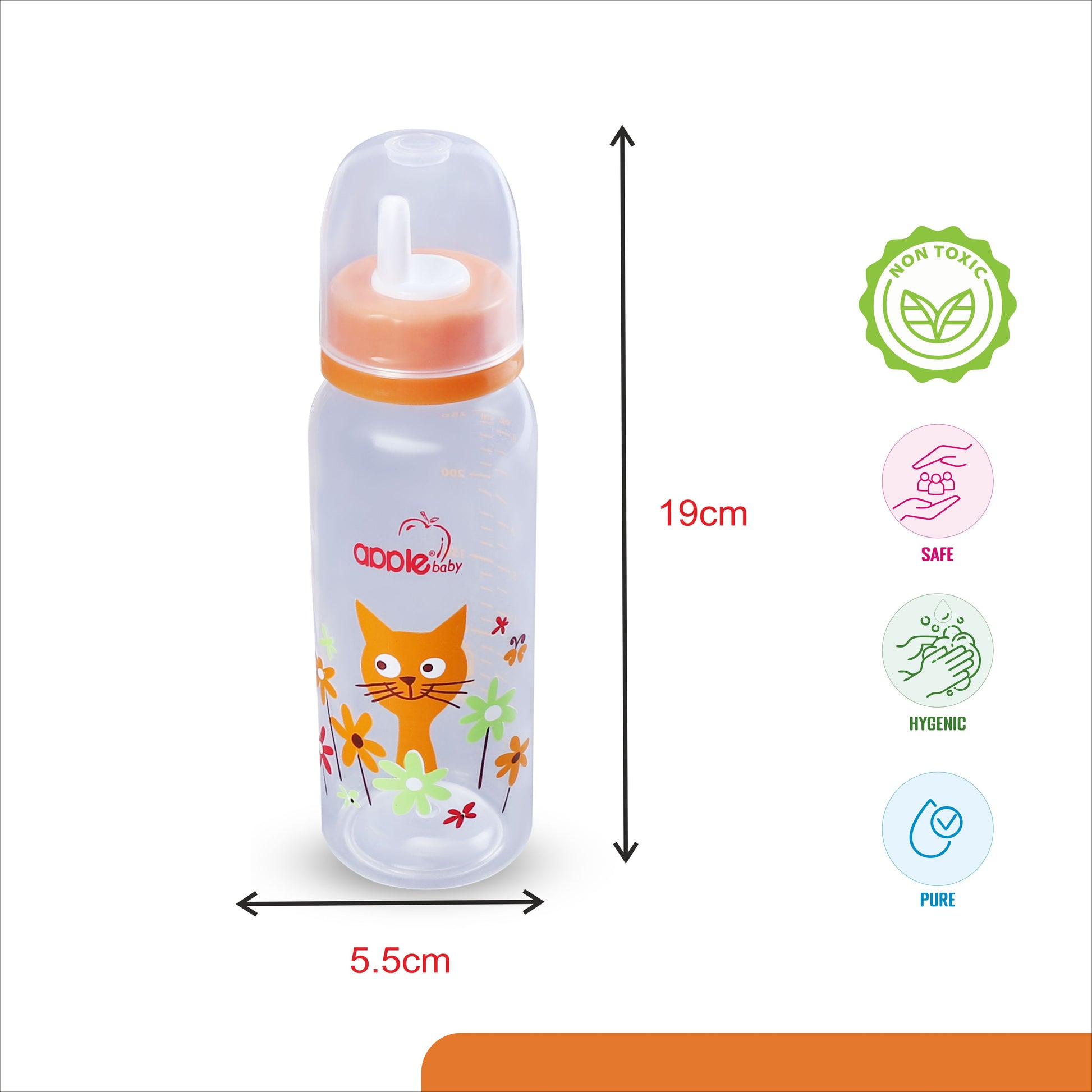 Apple baby feeding bottle is a container used for feeding infants and young children when breastfeeding is not an option or as a supplement to it. These bottles are designed to hold liquids, most commonly breast milk, formula, or water, and are typically made from materials such as plastic, glass, or silicone.