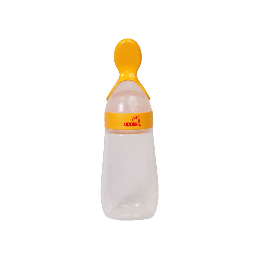 1.Silicone squeeze feeder makes feeding easy 2.Gently squeeze silicone base until desired amount of food or cereal collects on the spoon 3.Protective cover keeps food from leaking 4.Baby food is allowed to pass through a hole in the spoon's neck and into the bowl of the spoon