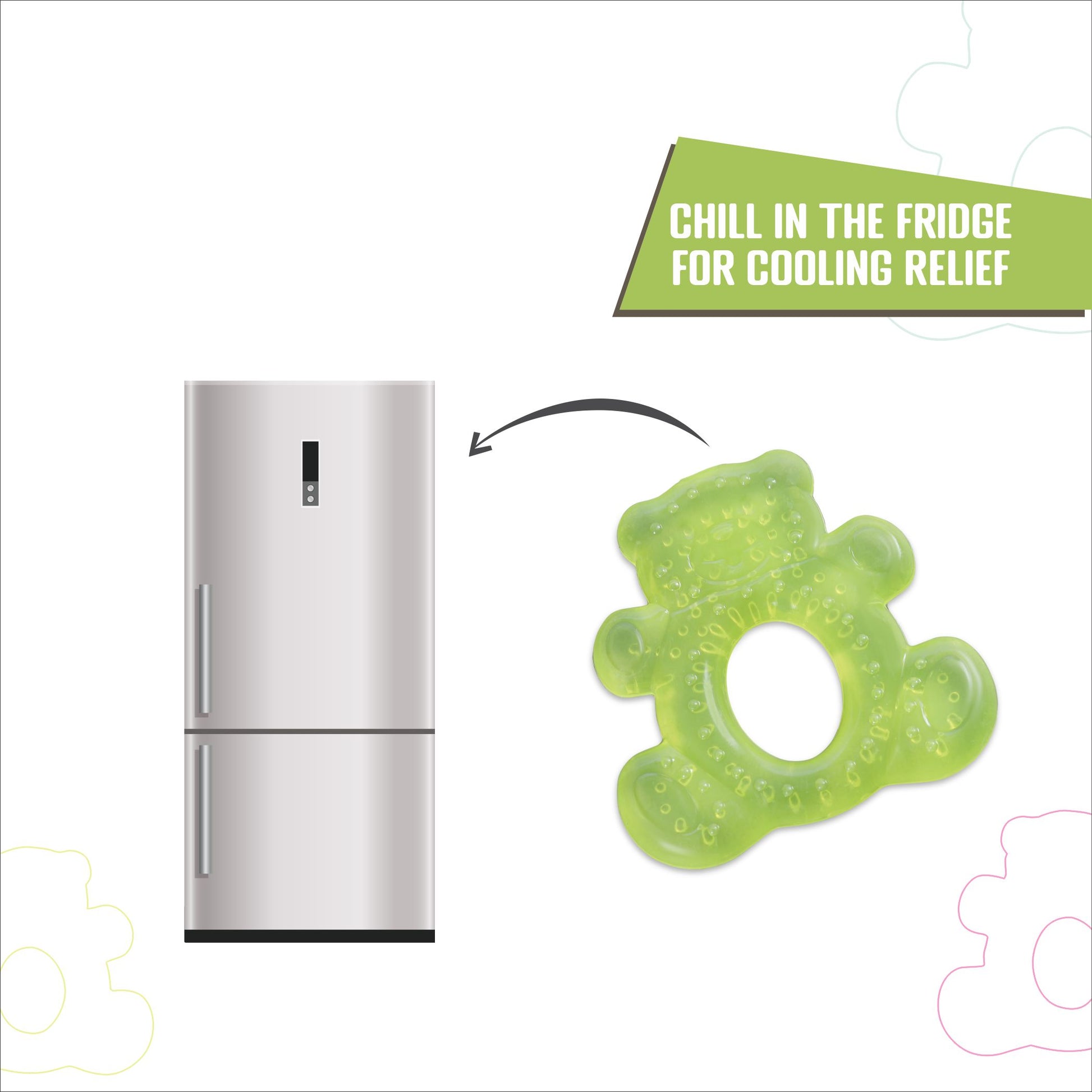 - Some bear teethers are designed to be refrigerated to provide additional relief through cooling.