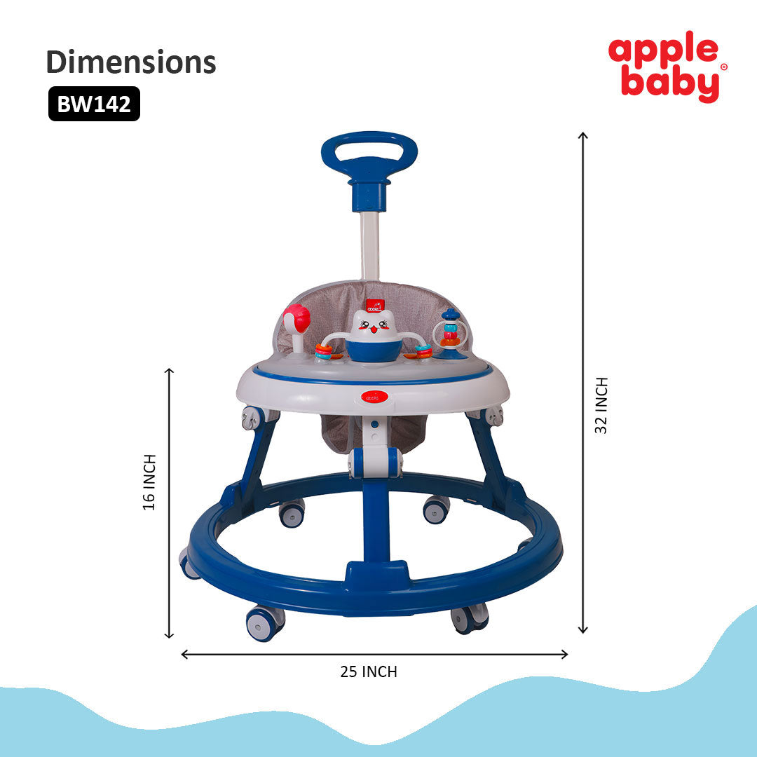 Support your little one's first steps with the Apple Baby Adjustable Baby Walker, thoughtfully designed to provide fun, comfort, and safety during their walking journey. This foldable activity walker is perfect for infants and toddlers who are just beginning to explore the world on their feet. It features an adjustable height setting that grows with your child, ensuring a perfect fit and promoting natural walking posture. The walker comes equipped with entertaining music and colorful toys, keeping your baby engaged while enhancing motor skills and coordination. The comfortable padded seat offers ample support, while the high backrest ensures proper posture and added safety. For added peace of mind, the Apple Baby Walker includes a wheel lock system to prevent unwanted movement and ensure stationary play when needed. The sturdy and stable base provides reliable support on various surfaces, making it suitable for both indoor and outdoor use.