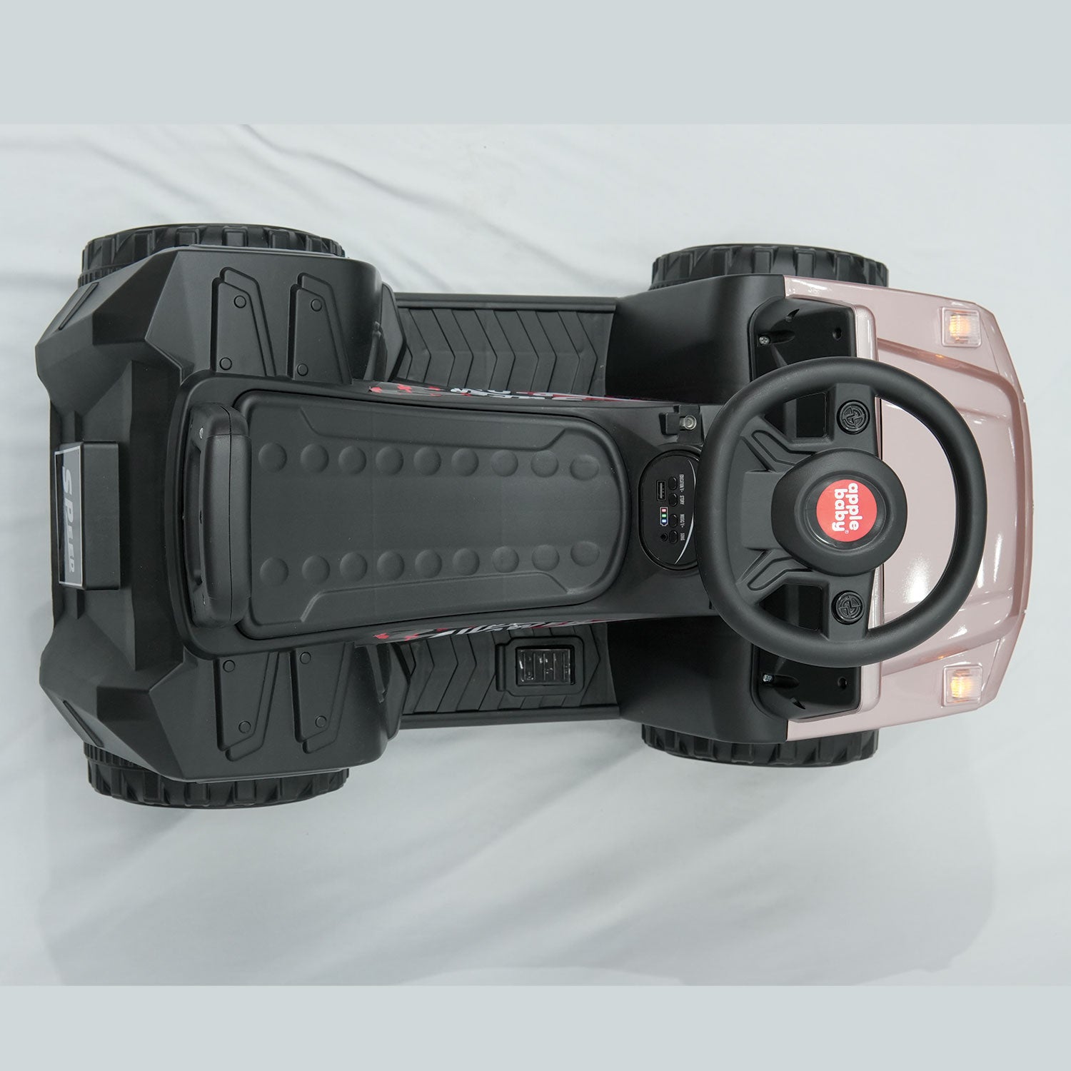 The sleek metallic pink finish paired with a signature front grille and LED headlights gives it a premium look that’s sure to impress. The illuminated windshield panel adds a touch of fun and excitement, lighting up every ride with bright green LED effects.