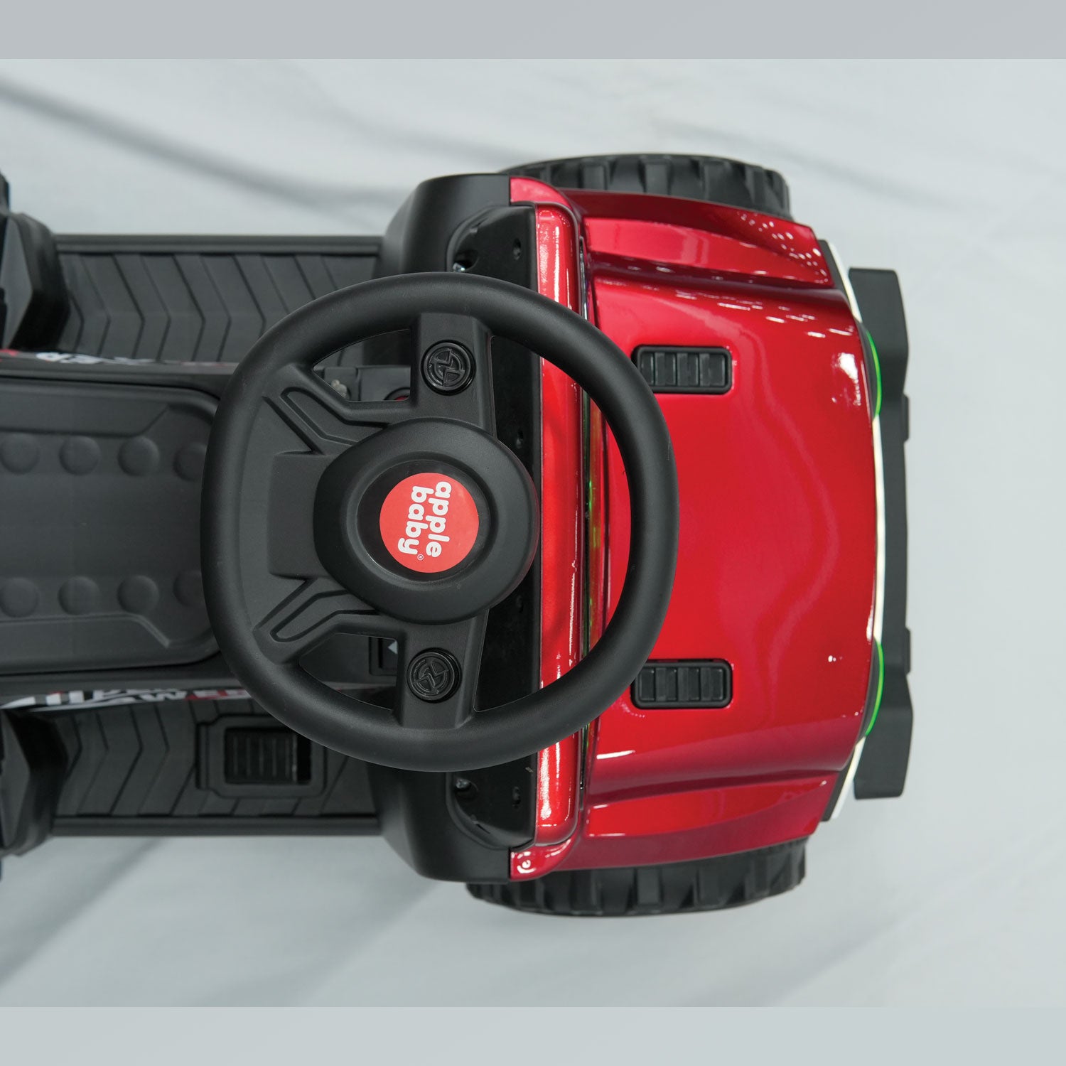 The striking red body with glowing green headlights and grille lights gives it a futuristic and playful look that kids absolutely love. The wide, rugged tires make it perfect for smooth or slightly rough surfaces, offering steady balance and grip for a confident ride.