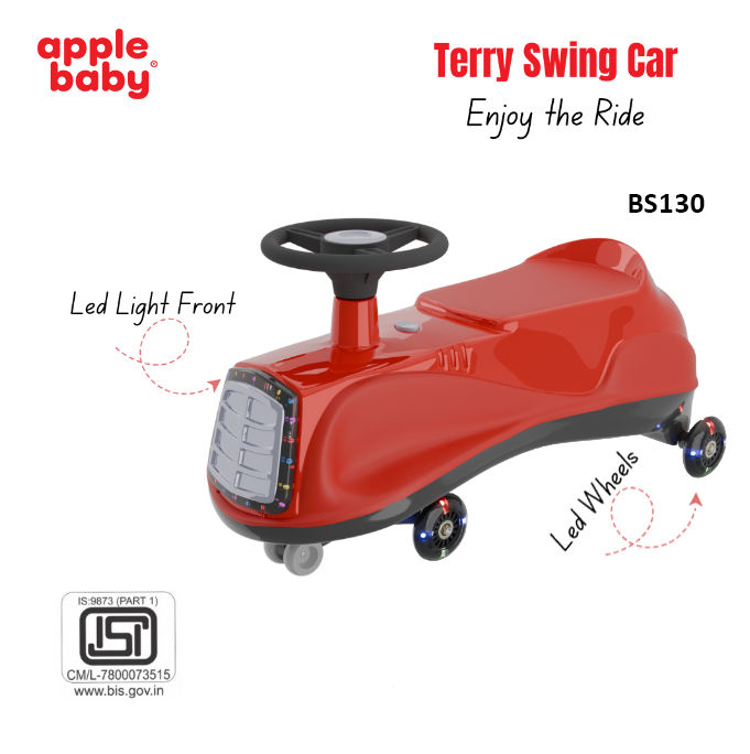 Apple Baby Terry Swing Car | LED Light-Up Grille & Wheels | Musical Twist Ride-On Toy | Ages 3+